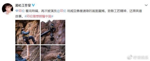虽说《理想照耀中国》还未官宣定档,但邓伦拍摄的《天河》已经放出了特辑和一些剧照,这个作品主要是致敬工匠精神,还原英雄故事,此次邓伦在剧中还有吊威亚悬崖速降的画面。