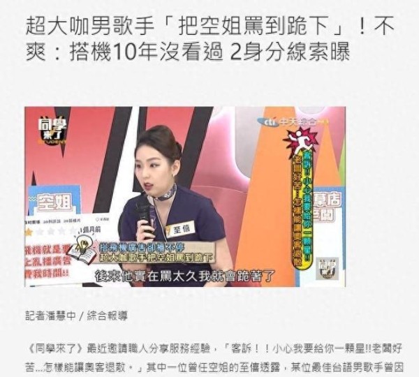 空姐自曝被男歌手怒骂!跪着听对方骂完,该男星还获得过金曲歌王