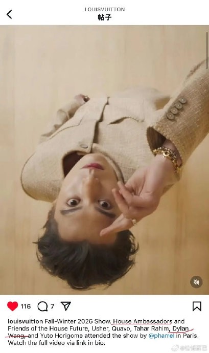 双方合作可追溯至2021年,王鹤棣连续六年亮相LV全球大秀,从上海、阿那亚到巴黎,其时尚表现力从青涩蜕变为从容,被权威媒体评价为“不羁中透出矜贵”,完美契合LV的先锋精神。2026年巴黎秋冬男装秀上,他以早秋新季系列造型登场,生图即引爆社交媒体,印证其“行走的LV名片”地位。