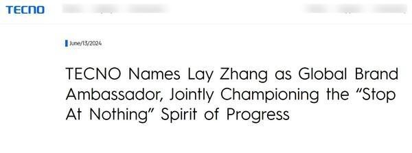 TECNO在官方文稿中表示,作为演员、词曲作者、舞蹈家和时尚潮流引领者,张艺兴在全球,尤其是在亚洲的影响力是不可否认的。他不断突破界限的决心与TECNO“Stop At Nothing(永不止步)”的品牌口号所体现的不懈创新精神完美契合。“这种协同效应使张艺兴成为该品牌的完美代言人。”