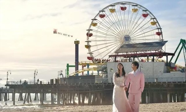 好不容易连哄带骗地把这茬给糊弄过去,重头戏来了——洛杉矶海滩,飞机拉横幅。