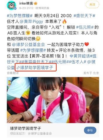 映客直播携手缘梦公益为困境学子撑腰!宝石Gem、《盛世天下》女主黄羿等倾力助阵