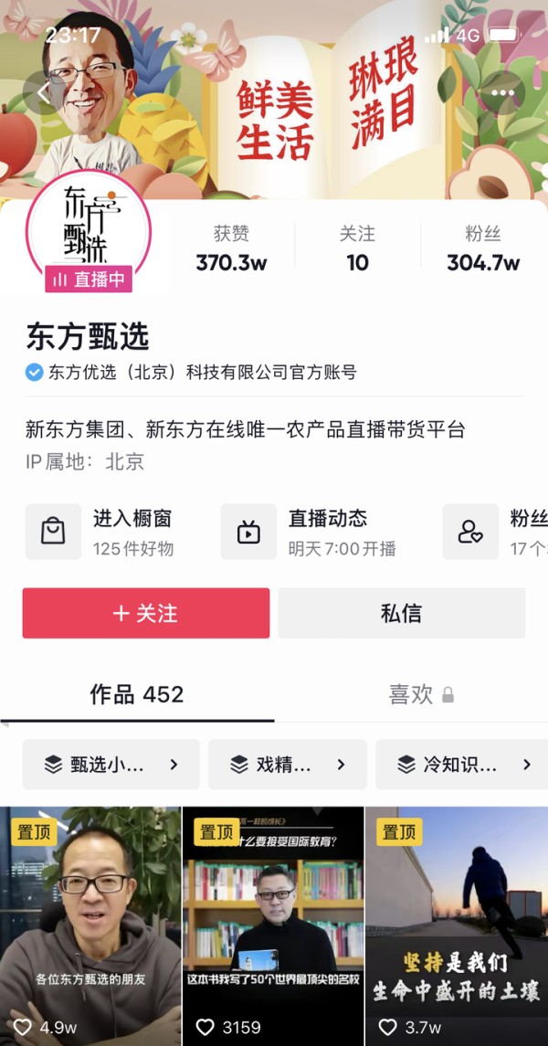 去年12月28日,定位于助农项目的直播平台“东方甄选”上线。和包括好未来在内的大多数教育公司一样,新东方也积极寻求业务转型。彼时大火的直播带货是新东方转型的其中一条路线。