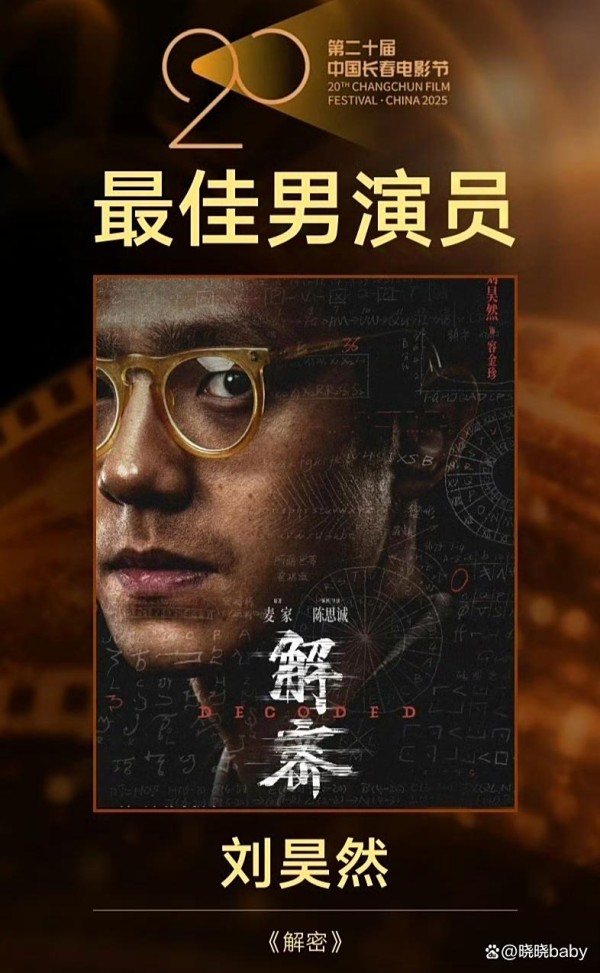 2025年8月28日晚,吉林长春电影节“金鹿奖”颁奖典礼现场星光熠熠。当主持人念出“第二十届金鹿奖最佳男演员——刘昊然”时,全场掌声如潮,镜头扫过台下,葛优、刘烨等戏骨级演员纷纷露出欣慰笑容。这位27岁的演员凭借《解密》中数学天才容金珍一角,从一众实力派中突围,成为金鹿奖历史上最年轻的影帝,这场胜利不仅是个人的高光时刻,更成为中国电影新生代演员成长的生动注脚。