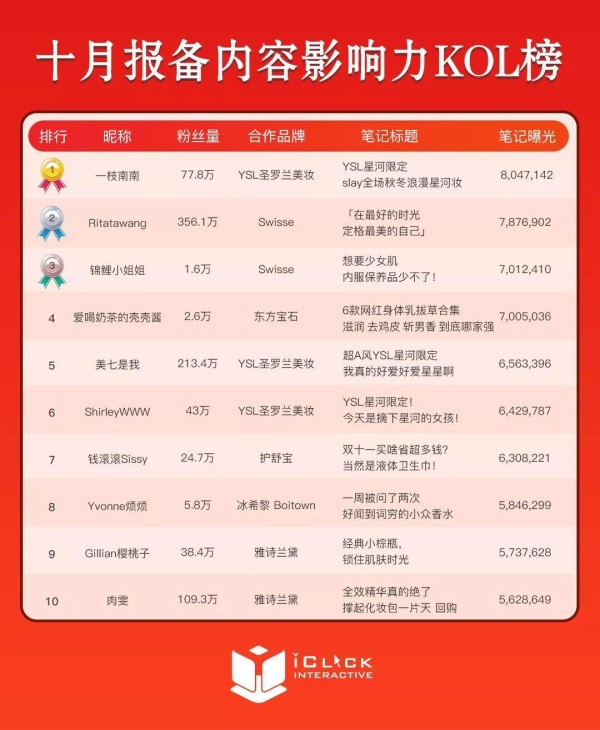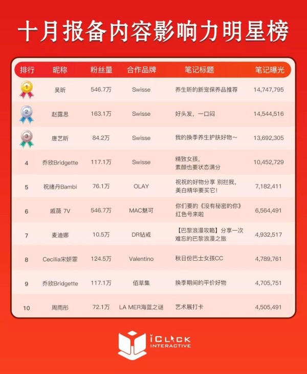 10月小红书品牌营销及达人声量排行榜重磅发布!