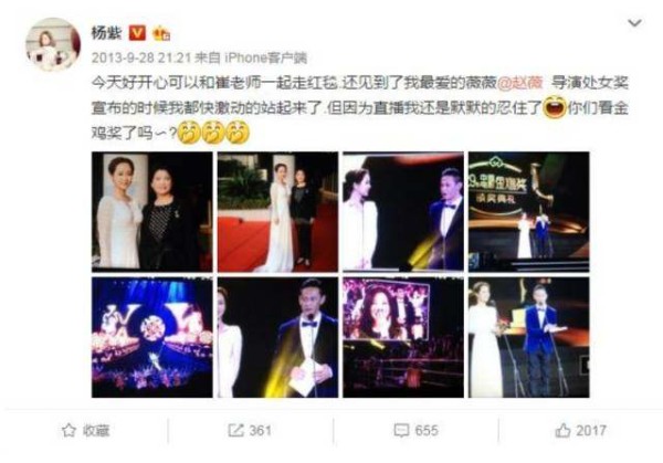 杨紫更是将迷妹进行到底,微博中经常会有我的偶像薇薇这几个字眼。