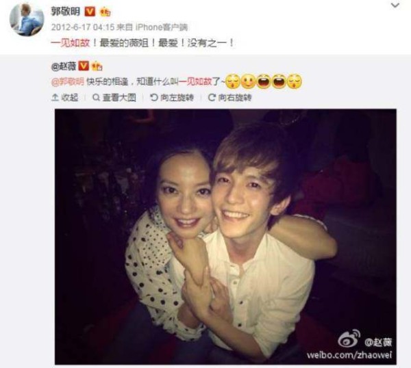 郭敬明更是在微博中表达对赵薇的喜欢,最爱薇姐,没有之一。