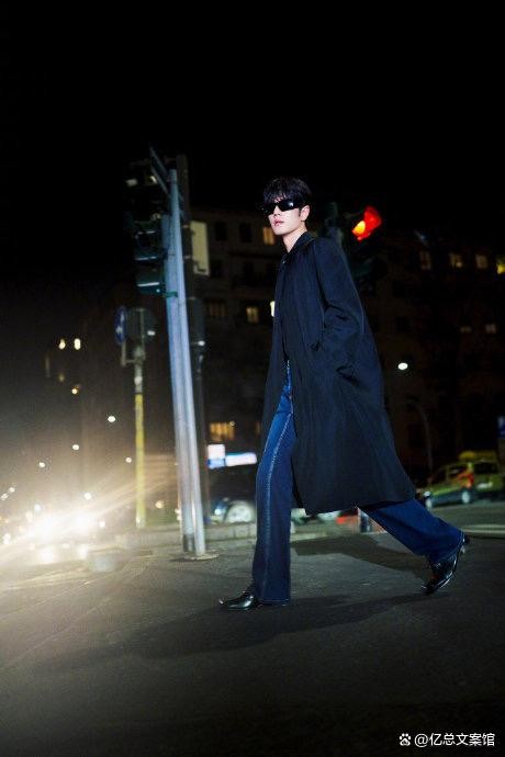 当天肖战以全黑廓形风衣搭配墨镜亮相,利落剪裁勾勒出挺拔身姿,没有繁复装饰,却将Demna的冷感高级美学诠释得淋漓尽致。生图镜头下,他五官精致、气场沉稳,摘镜瞬间眼神澄澈深邃,矜贵感与电影氛围感拉满,完美诠释“人穿衣”的顶级格调,被Vogue、WWD等全球顶级时尚媒体争相报道,盛赞其为“东方绅士与意式奢华的完美融合”。