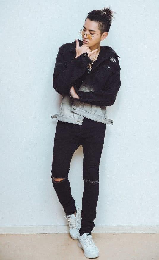 素色外套和鞋子虽然简单,但是难掩他本身的帅气街头样貌,破洞牛仔裤与金属项链,以及眼镜更增添了街头气息。单品的版型都很不错,搭配起来很修身,人群中最靓的仔非他莫属。