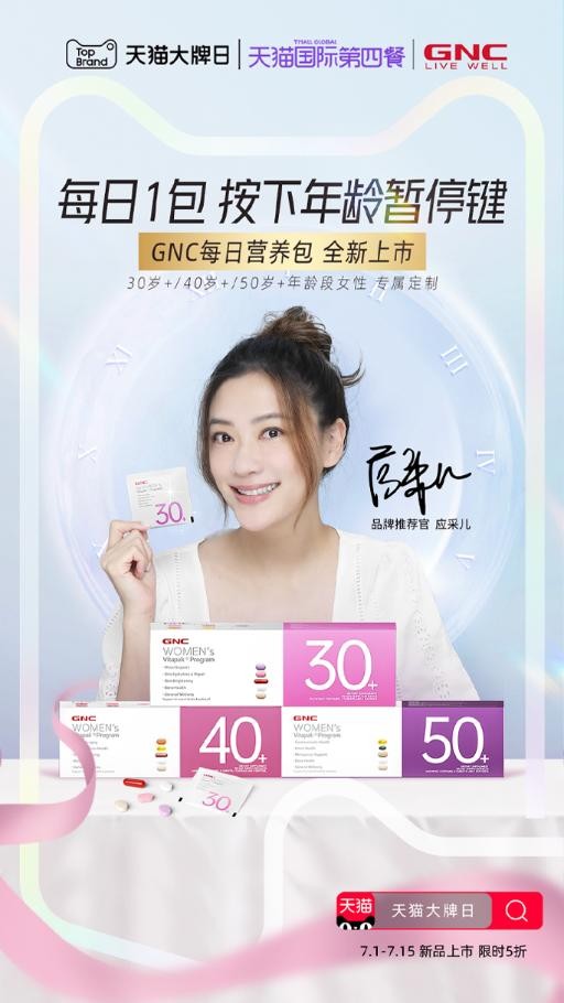 2022年6月30日,全球知名营养品牌GNC健安喜官宣应采儿出任品牌推荐官,携手推出分龄分性别定制的精准营养创新产品「GNC每日营养包」,引领膳食养生新风尚。