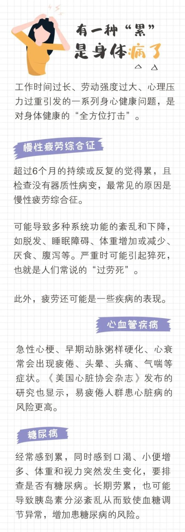 工作家庭连轴转,每天有做不完的事……“累”成为越多越多人挂在嘴边的词。因长期疲劳导致的各种疾病,也正在悄悄摧毁人们的健康。