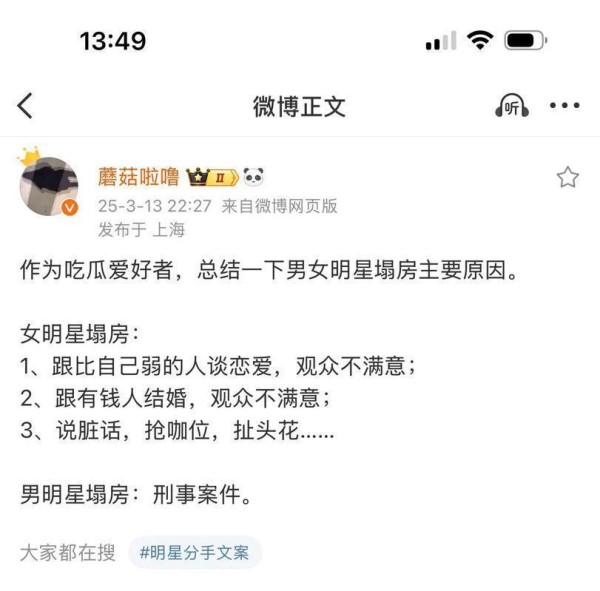 明星因炫富“塌房”,本质上是公众人物与社会的心理契约遭到破坏。在社交媒体时代,私人生活与公众形象的界限日益模糊,因此,明星如何平衡“真实自我”与“社会责任”,成为一门必修课。对于观众而言,这类争议也促使我们思考:我们是否对明星的道德要求过高?财富展示是否必然等于“价值观扭曲”?或许,更值得关注的是明星行为背后的社会结构性矛盾——当资源分配不均成为普遍焦虑时,任何个体的高调都可能成为情绪的出口。