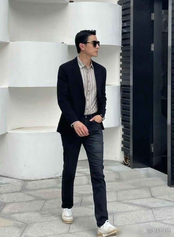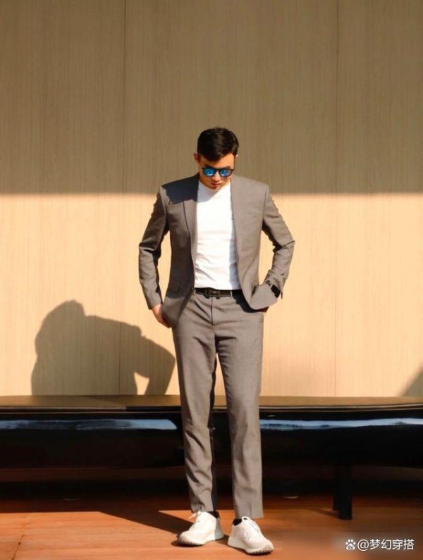 西装配运动鞋已经成了当下时尚潮流,也改变了传统西装的搭配风格,以往西装一般都是搭配黑皮鞋,虽然如此搭配也显绅士风度,但又显得脚下有些沉重。