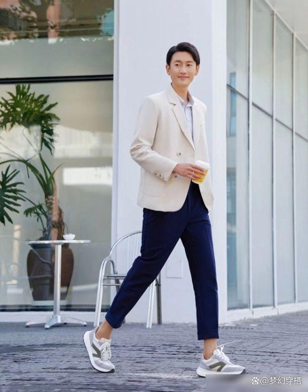 因而近几年不断有博主和达人们开始尝试将运动鞋与西装结合,打破了传统的西装穿法,更显年轻活力,易于日常穿搭。