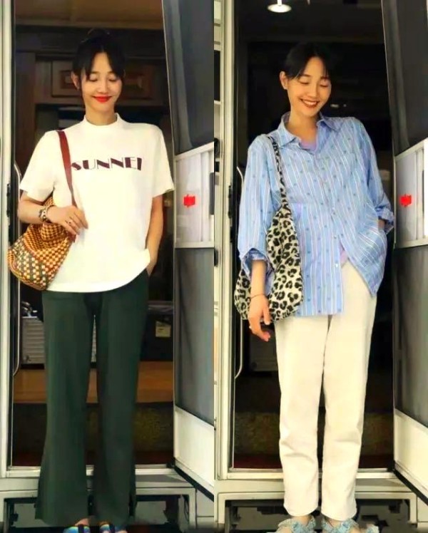 基础款的T恤与蓝色条纹衬衫,竟也成了女明星衣橱中的常客。无论是基础的T恤,还是带有竖形条纹的衬衫,搭配上挺括的面料裤子,都能很好地修饰腿型,使双腿显得更加修长挺拔。这样的穿搭,不仅适合明星,普通人穿上也能立刻提升气场。