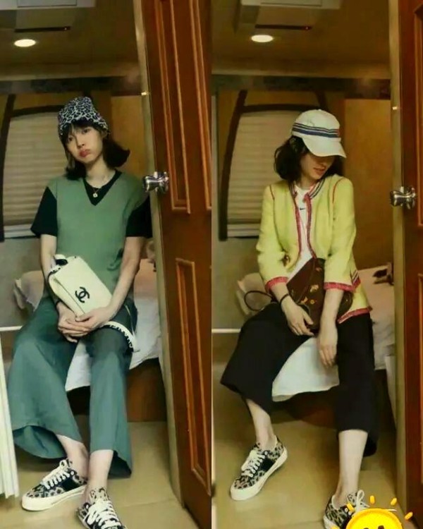 运用层次感增加搭配亮点是她的另一大特点。即便是基础的T恤,通过巧妙的层次感与色彩运用,都能提升整体造型的高级感。这种黑色与绿色交织的插肩袖上衣,不仅展现了精致的美感,更流露出一种别样的高级气质。