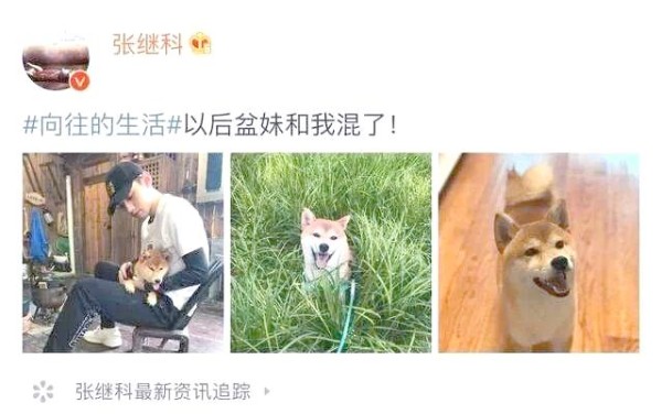 参与《向往的生活》录制并带走“锅碗瓢盆”中的盆妹,张继科对狗狗的喜爱可见一斑。