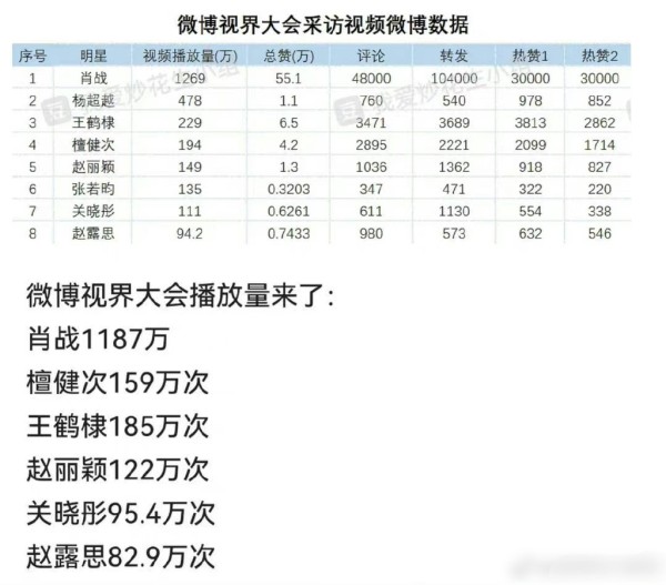 不止如此,此次WB视界大会采访视频各明星数据也出来了,对比惨烈,播放量差了一位数,转赞评差了两位数,几十倍。肖战的人气真是不服不行。这里想说的是:人气不会凭空出现,都是作品,人品,能力凝聚而来。《陈情令》演活了魏无羡,接下来唐三,顾一野,顾魏,哪一个都可圈可点,深受大众喜爱。而肖战的人品与个人魅力更是把剧粉留住,粉丝队伍不断扩大,才有这一骑绝尘的数据和打不散的人气。