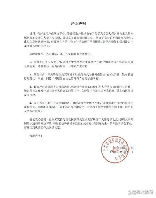 黄慧颐说保剑锋婚前出轨演员保剑锋方回应出轨、结婚、出轨:大家法庭见
