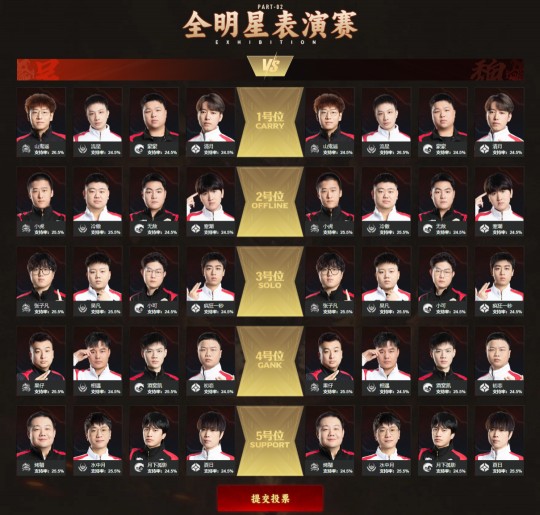 全明星阵容投票通道现已全面开启,4支队伍20名选手,只有10位选手可以从全民投票中脱颖而出。
