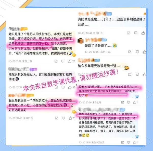 简言之,这一切都源于粉丝们对经纪人的长久积怨。在许多“元宝”看来,熊斌的业务能力似乎并不尽如人意。粉丝们列出了诸多“罪状”,包括宣传力度不足、无法争取到优质资源等。特别是在张远参加《披荆斩棘的哥哥》这样热门的综艺节目时,镜头量的不稳定以及热搜话题的缺乏力度,都让粉丝们将矛头指向了经纪人。
