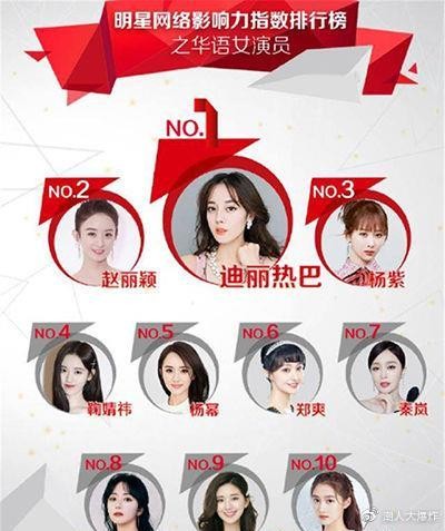 明星影响力大排名:杨幂夺得榜首热巴紧随其后,赵丽颖只排到第三
