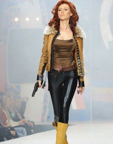 俄美女间谍进军娱乐圈 持“枪”走秀闹笑话