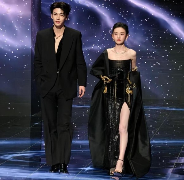 真正让二人出圈的,是清冷与明艳在同框时达成的完美平衡。张凌赫自带少年感的疏离气质,黑色高定中和了稚嫩,增添成熟贵气;宋祖儿则以灵动双眼捕捉镜头,甜酷兼具。并肩而立时,双方气场既对立又互补,主持人当场预言“两人即将美上热搜”,果不其然话题迅速登顶。