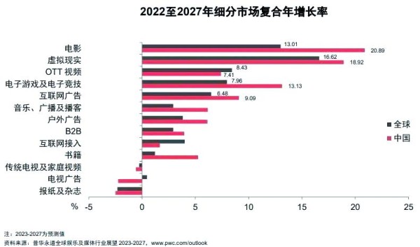 普华永道中国内地及香港媒体行业主管合伙人邱丽婷指出,2023年标志着娱乐与传媒行业的一个关键转折点。预计在此之后,该行业将逐步恢复至疫情前的增长速度。当前,众多企业正积极运用科技,特别是人工智能技术,来提升生产效率和创造力。这一趋势推动着娱乐与传媒产品日益数字化,从而降低了生产和分销成本,为商业模式和科技应用带来了创新空间。企业正通过这些创新手段来提升盈利、吸引客户并拓展市场。