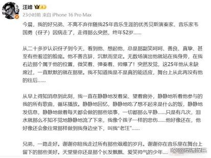 8月15日,大家都知道的歌手汪峰在社交平台上流泪发话,说自己亲密的兄弟突然走了,实在让他难以接受,太突然了。