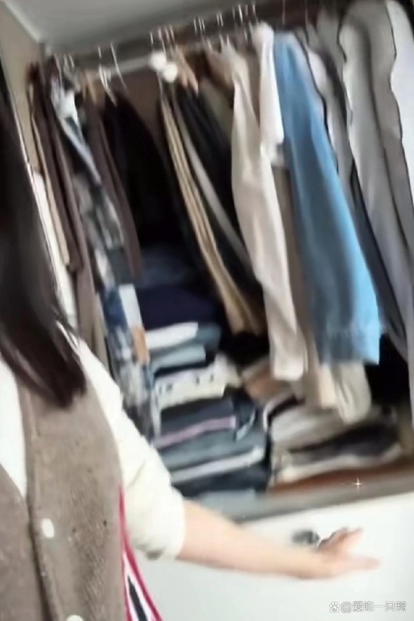 镜头扫过去的瞬间,真的太有冲击力了!挂满衣服的衣架,一排排摆得整整齐齐,连一点空隙都没有,颜色、款式五花八门,从休闲装到气质款,应有尽有。不光是衣架上满满当当,下面的柜子也没闲着,被塞得严严实实,估计打开柜门都得小心翼翼,生怕衣服掉出来。