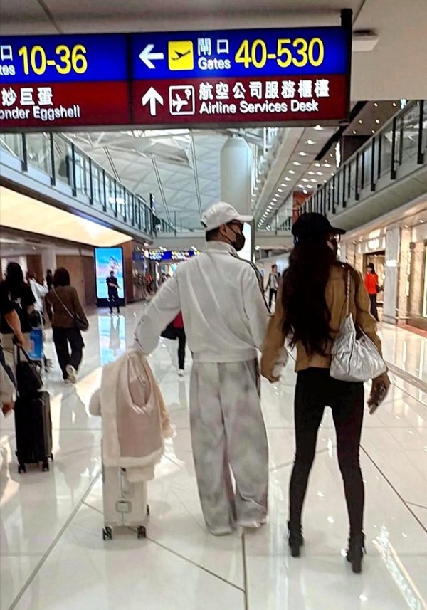 2月26日,有网友在香港机场看见两人,汪峰一身花色阔腿裤,整个人气质都变得年轻不少。