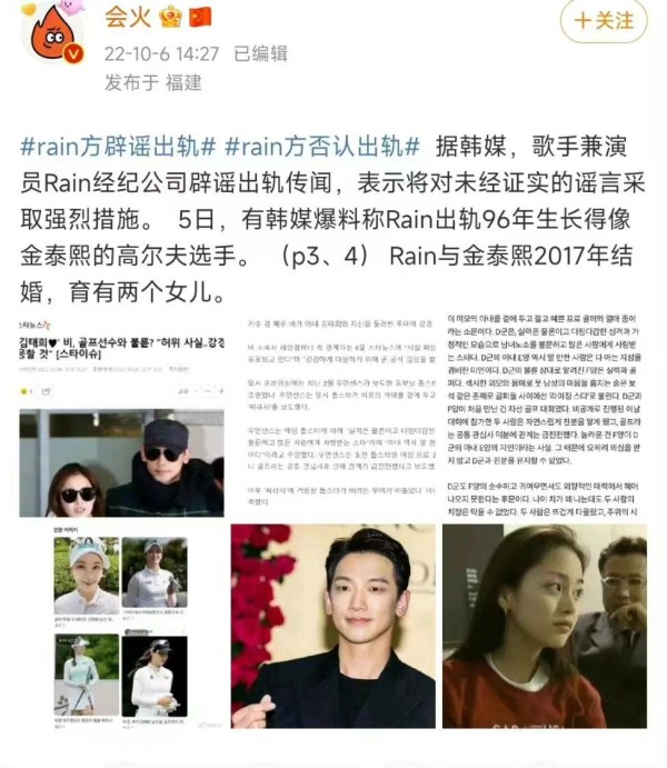 网曝Rain出轨小14岁高尔夫女选手,对方长得像金泰熙,经纪公司辟谣RAIN和金泰熙婚姻告急?男方遭爆出轨高尔夫女选手,公司出面澄清