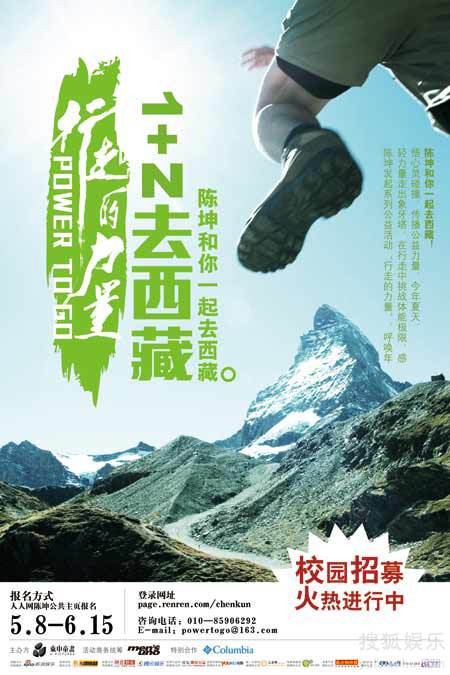 著名艺人陈坤发起公益活动“行走的力量”去西藏“行走的力量”8月赴藏 陈坤为明星公益做范例