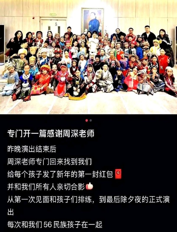 演出结束后,周深突然回到后台,掏红包逐个递给小演员,带队老师都惊讶了,网友:他总在镜头外默默奉献,但每次细节都让人温暖