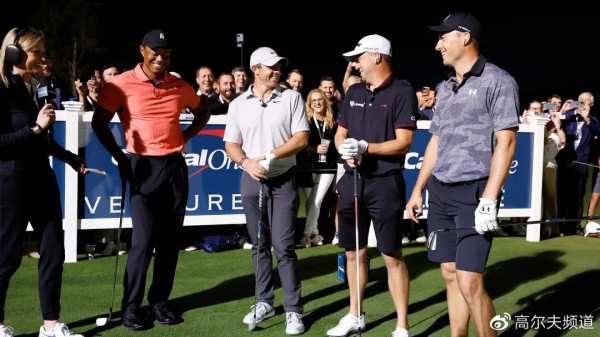 第七次举办的“The Match”于美国东部时间12月10日晚7点在鹈鹕高尔夫俱乐部打响,赛事迎来今年美巡“球员影响力计划”前4员大将——老虎·伍兹、罗里·麦克罗伊、乔丹·斯皮思、贾斯汀·托马斯的超强阵容。