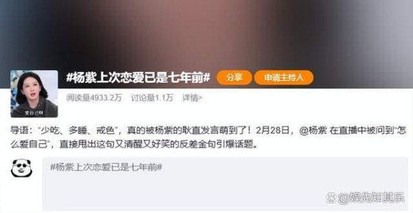 近日,#杨紫上次恋爱已是七年前#的话题悄然登上热搜。没有官宣,没有辟谣,只有网友们在时间轴上细细梳理后的一声惊叹:原来,这位如今稳坐90后小花头把交椅的女演员,已经独自走了这么久。