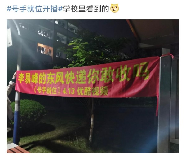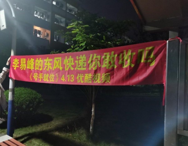有的李易峰粉丝直接拉起了横幅,用最直接的方式为《号手就位》进行宣传,自己做了横幅挂在树上,进行线下的宣传,只要是看到了这条横幅,也算是作品宣传到位了,哈哈,也是相当有排面了吧?