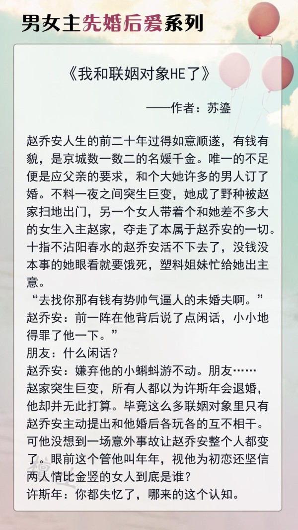 六本男女主豪门联姻系列:欢喜冤家先婚后爱,从无感到真香!超撩5本男女主双豪门联姻的宠文,《春光无限好》强推,男主真香现场