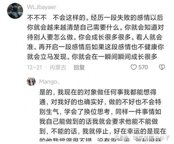 同时我也开始重新寻找自己的爱情。我相信在经历了一段失败的感情后我会更加成熟和理智地去选择自己的伴侣也会更加珍惜和呵护这段来之不易的感情。