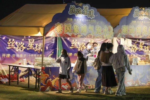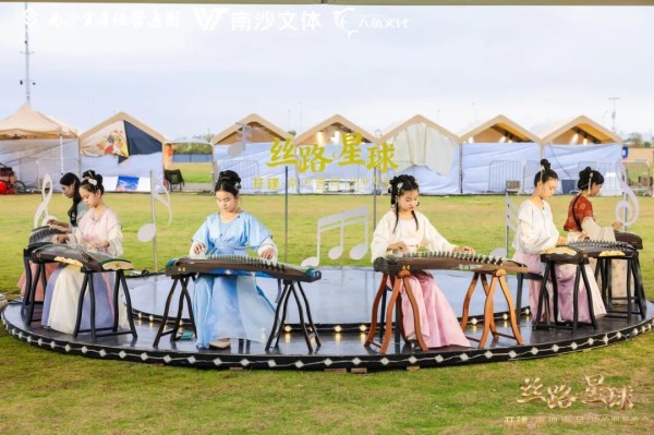 现场不仅汇聚各地特色美食,更特设互动舞台,冼星海文化专题讲堂、古筝演奏、民族舞蹈等非遗演艺轮番上演,以艺术叙事致敬丝路精神。入夜后,大规模无人机编队腾空而起,璀璨光影与珠江夜景交相辉映,为这场文化盛会画上梦幻句点。