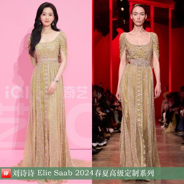 刘诗诗选择的2024春夏高级定制系列黄色花朵刺绣钉珠礼服,简直就像是从童话里走出来的公主一样,这条裙子上的花朵刺绣和钉珠,精致又华丽,黄色也衬得她皮肤白皙,整个人都散发着仙气,不得不说,的高定礼服,真的太梦幻了。