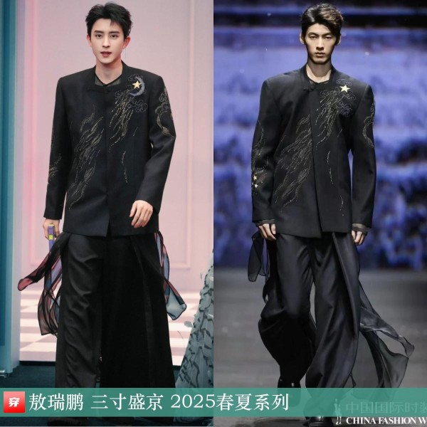 唐九洲的2024秋冬系列黑色软呢夹克,则展现出一种完全不同的风格,黑色软呢夹克,经典又百搭,搭配简单的衬衫和牛仔裤,就能轻松打造出一种休闲又不失正式感的,唐九洲穿上这件夹克,整个人都显得很有气质,也难怪一直是很多明星的心头好。