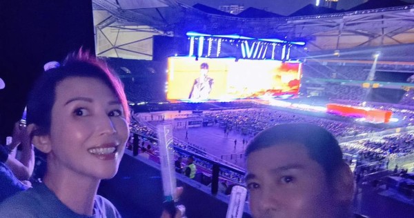 10月19日,蔡少芬在社交平台上分享了她在张杰深圳演唱会现场的合照。照片中,她看起来非常开心。