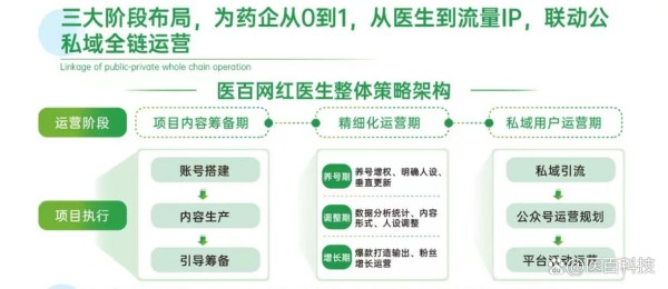在抖音、快手、视频号等主流平台,从基础搭建、精细化运营、私域运营三个阶段,形成完整网红医生IP打造运营链路。