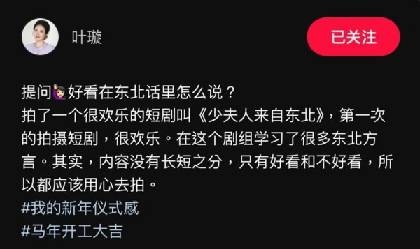面对网民的率先发文曝光,以及随之而来关于降级的巨大争议,叶璇随后亲自在社交平台发声回应。小编觉得,她这次展现出了豁达心态和超高情商。她没有因冷嘲热讽生气,反而大方分享拍摄心得,虚心向网民请教东北话发音。