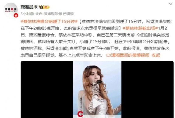 被一帮粉丝戏称做“蔡依林标准时间”的那种作息,被她无比严谨周密不苟地执行实施;哪怕是在演唱会当天的时候,她依旧会于后台那儿寻觅找寻机会实现小憩;在1月2日的那场演出之前,她就向团队表明表示需要休息15分钟的时间,并且在短暂的睡眠之后按时准时登台亮相,完成了一整场的表演演出。