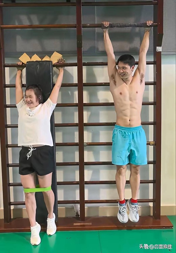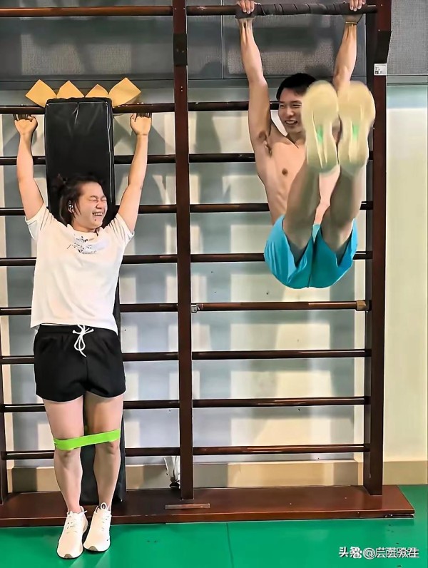陈艾森,这位伦敦奥运会双人10米台冠军,亲自为全红婵做示范。他抓住横杆,双腿轻松抬起与地面平行,一系列动作如行云流水般顺畅。转过头看向全红婵时,眼中带着一丝鼓励,又像是在激发她的斗志。全红婵自然不甘示弱,双手紧紧握住横杆,用力向上抬起身体,可一开始并不顺利,试了几次才勉强完成一个动作,落地时直接瘫坐在地,还对着镜头调皮地吐了吐舌头。这一可爱的举动,让人忍俊不禁,也展现出她不服输的性格。