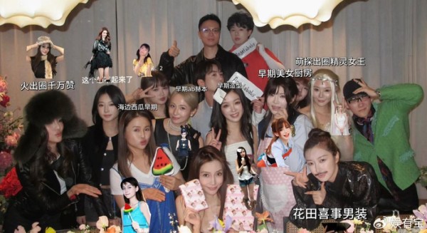 在这场以网红为主的生日宴合影中,一些细节被网友反复讨论。 在大合照里,尽管Baby位于中心,但由于周围的朋友们造型各异、表情生动,有观点认为“主角光环被削弱”、“网红们更抢镜”。 唯一在场的明星好友吴千语,站在合影的最左侧,与Baby之间隔了两三个人。 两人早年同期在香港以模特身份出道,因为外形相似曾一度被媒体并称为“港圈双壁”。 在Baby事业如日中天时,吴千语的名气相对较弱;如今时过境迁,吴千语的到场反而被许多评论视为“患难见真情”的体现。