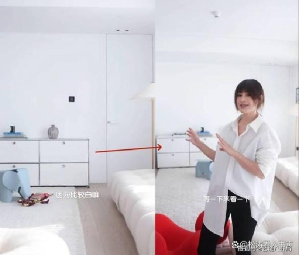 客厅的布置简约到几乎“无设计”的程度,却处处隐藏着讲究。那款白色模块沙发是圈内多位明星的心头好,市场价轻松破十万元。旁边一抹亮红的扶手椅打破平衡,又恰到好处地让空间变得生动。最有趣的是角落里那只不起眼的白色不锈钢柜——看似普通办公柜,其实是高端定制款,连明道都排队半年才拿到手。在别人看来“无存在感”的地方,她却舍得花时间、花心思,这或许就是所谓的生活品味。